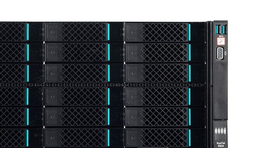 KunTai R524 存储型服务器是JIUYOU.com数码基于鲲鹏处理器推出的新一代 ARM数据中心服务器。。。主要面向存储业务,,,,具有海量存储、、、、高性能、、、低功耗以及易扩展的特点,,,适合为大数据分析、、、软件定义存 储等应用场景的工作负载进行髙效加速。。